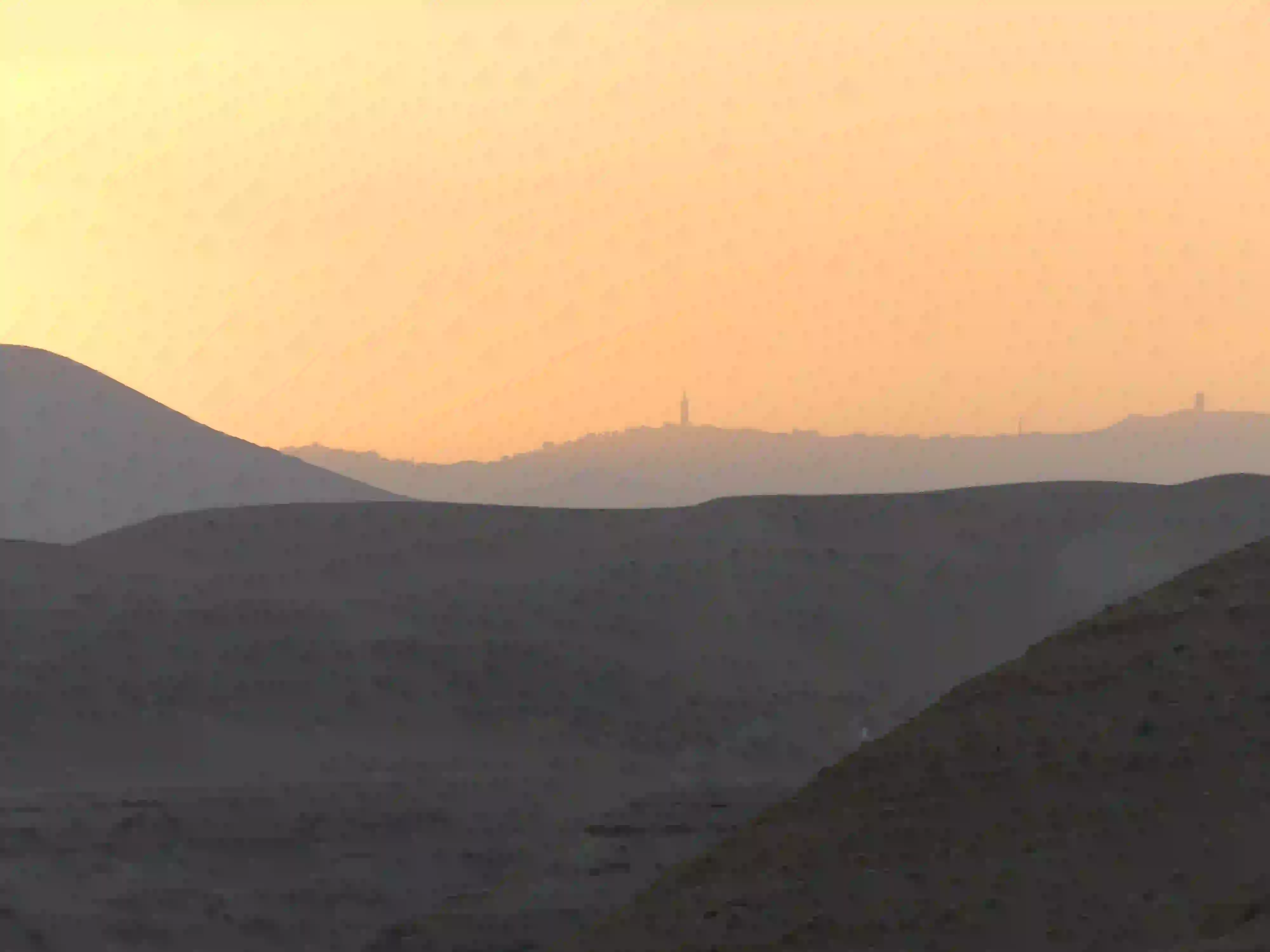 File:Soleil couchant depuis l'embouchure du wadi qelt, le mont des oliviers.webp